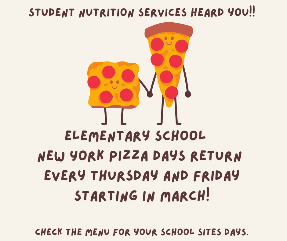 We HEARD you !! Food Services is bringing back New York Pizza for Lunch service every week starting in March 2026. Check the menu: https://pausd.nutrislice.com/menu